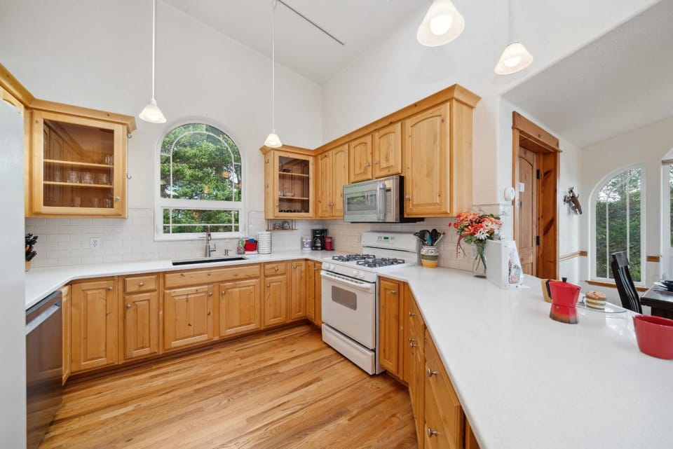 Indulge in a peaceful retreat at Ocean Views! Large Unique home with wrap around deck, 3 bedrooms, large kitchen!, our elegant House in Manzanita. Enjoy amenities including No pets allowed, Family friendly and Non-smoking, and more.
