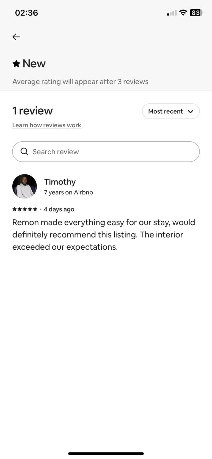 "I would really recommend this place .Newly renovated and well designed.very nice living room and kitchen.Well designed bedrooms and bathroom.
