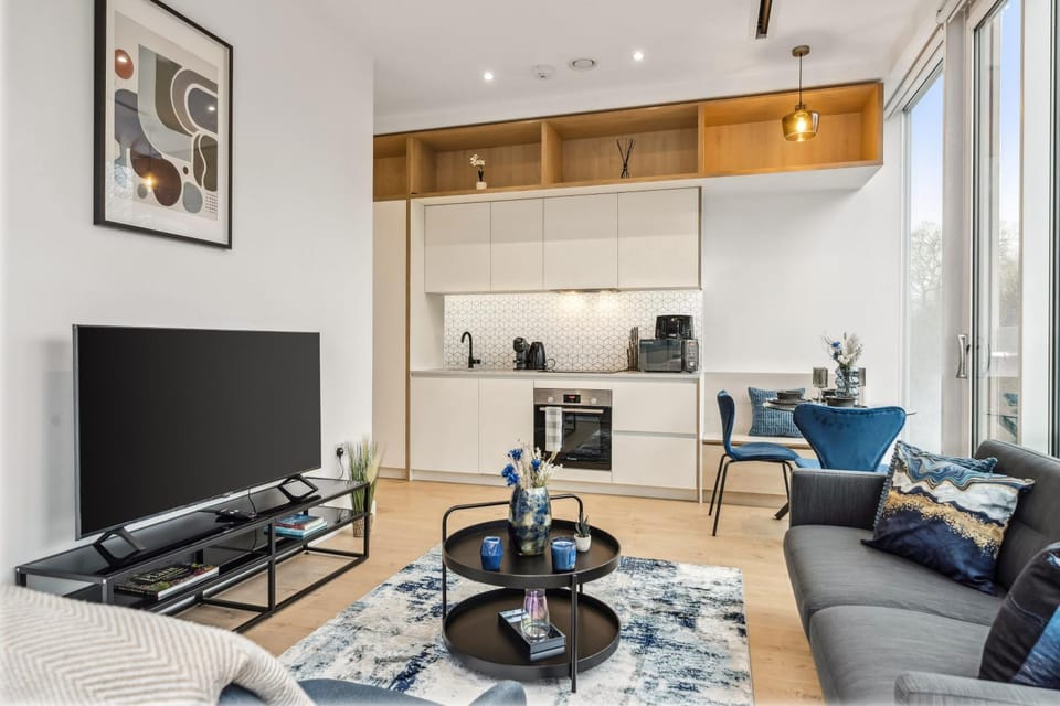 1.2 miles from Kew Gardens Tube Station in Brentford, Luxury Apartment with Cinema Room, Gym, Parking and Game Room provides accommodations with access to a fitness room.