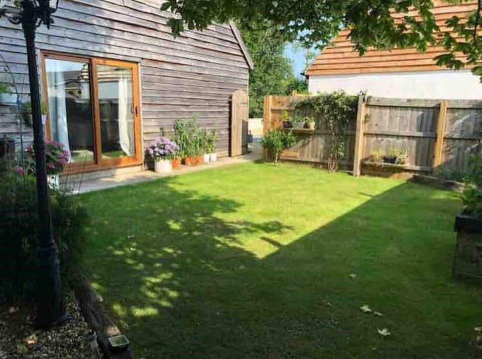 The accommodation is accessed via its own private entrance and is arranged over two floors. Downstairs is an open plan spacious living/kitchen/dining area. The private garden is accessed from this room via the patio doors. Upstairs is an open plan bedroom with super king bed, the bathroom is located directly off with bath and shower.