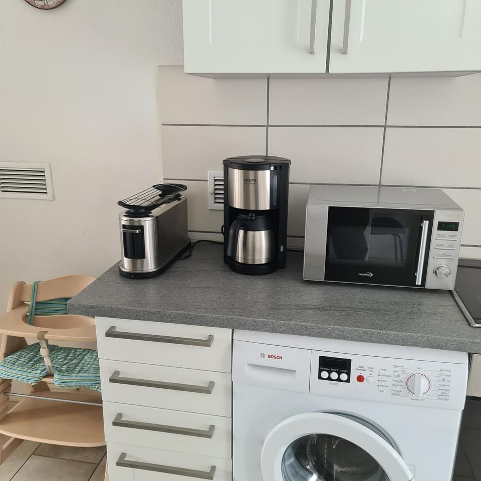 Die Küche ist mit vielen Geräten ausgestattet.