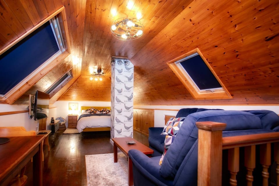 This place is a lovely apartment style loft, well designed to fit the space and well built. It was immaculately clean, cosy and warm (our visit was in early December). Beautiful farmland views and lots of local farm and wildlife on site. We got takeaway chineese delivered to the door with ease. Would happily stay again.