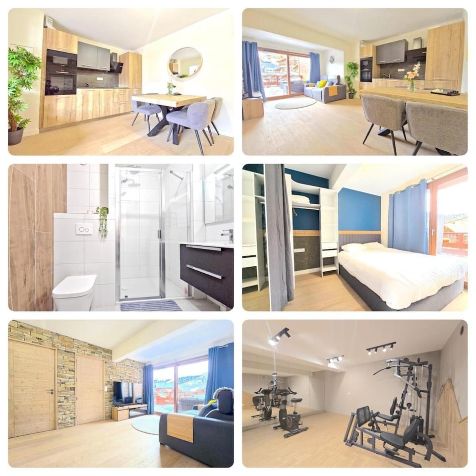 A 12-minute walk from Alpe d'Huez in L'Alpe-d'Huez, Incroyable T2 neuf et spacieux - Garage privé features accommodations with access to a fitness room. This property offers access to a balcony and free private parking.
