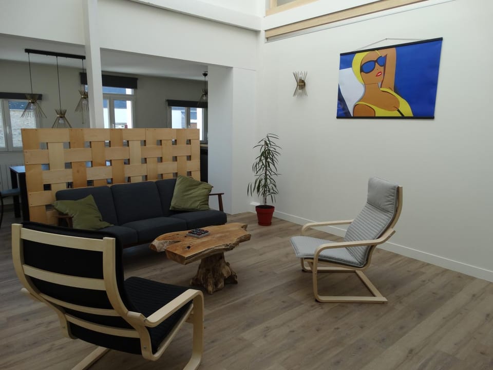 Offering a garden, Les Bains Le Rheun offers accommodations in Douarnenez. This apartment provides free private parking, bicycle parking, and free Wifi. Outdoor seating is also available at the apartment.