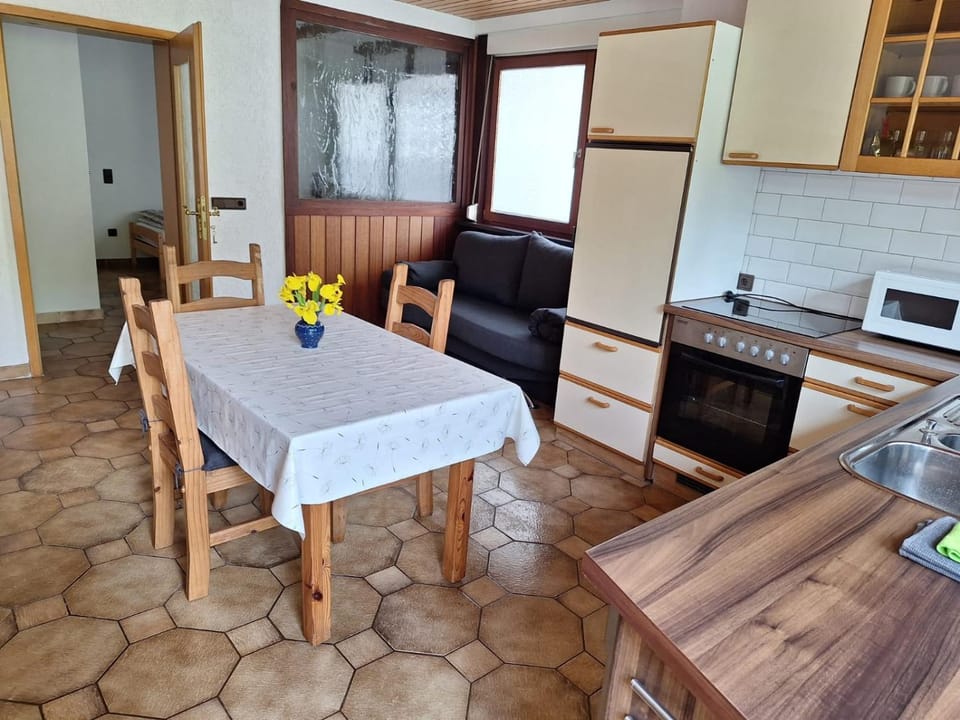 Sehr schöne kleine Ferienwohnung in einem typischen Dorf im Kasseler Bergland. Die Lage ist optimal in dem Dorf, sehr ruhig, Aldi und andere Einrichtungen nah, Berge rundherum in alle Richtungen. Dorf und Haus sind alt, verwinkelt, sympathisch. Die Wohnung ist im EG eines Altbaus, die ursprünglich altmodische Wohnung wurde mit neuer Küche, neuem Bad, neuen Lampen, neuer Schließanlage versehen, die Betten sind sehr bequem, 3 Personen können hier schlafen. Die Milchglasscheiben sind etwas altmodisch geblieben. Der Gastgeber ist sehr sympathisch, Checkin flexibel kontaktlos möglich, keine Schlüssel erforderlich, alles perfekt. Man sollte viel mehr als eine Nacht bleiben, und die schöne Gegend erkunden.