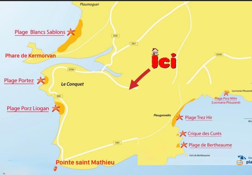 La longère des plages offers accommodations in Plougonvelin, 1.7 miles from Plage Du Trez Hir and 12 miles from Brest National Maritime Museum. This property offers access to a terrace and free private parking.