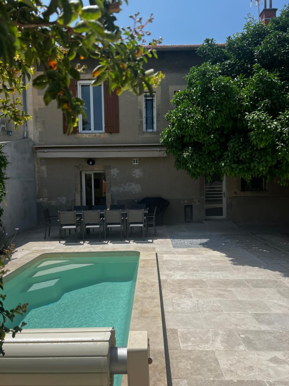Yes, a swimming pool is available for use at Maison Pamplemousse. Enjoy the water!