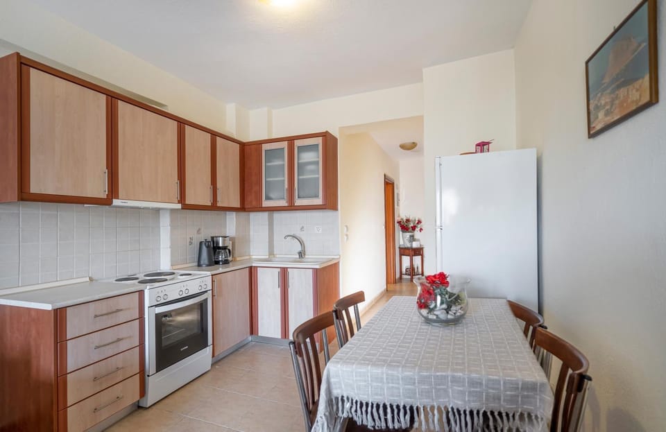 The beach is just a 2-minute walk away, with two grocery stores also within a 2-minute walk, and a third one about 4 minutes away. The town center is only two streets from the apartment, and the best ice cream in Flogita is practically right in front of the building! There’s plenty of parking available on the street where everyone usually parks (we stayed at the end of June 2025).