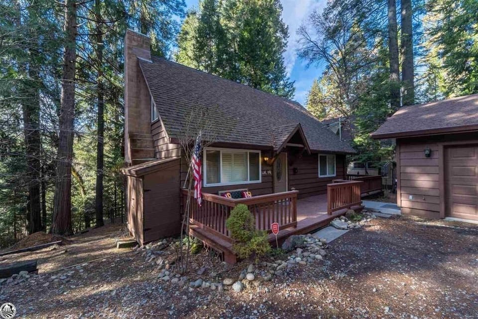 Beautiful fully functioning 1400 sq ft cabin in Mi Wuk Village. 3 bedrooms (1 King, 3 Queens) 2 full bathrooms. Beautiful balcony porch with bbq and fire pit. High Speed Internet, Propane fireplace, jetted tub. Just 10 minutes from Dodge Ridge and Pinecrest. Plenty of parking and easy access. Perfect for a romantic getaway or family vacation. Sonora and Jamestown are very cute towns with small wineries and live music on the weekends and lots for the kids to do! No smoking! Property is kid friendly!
