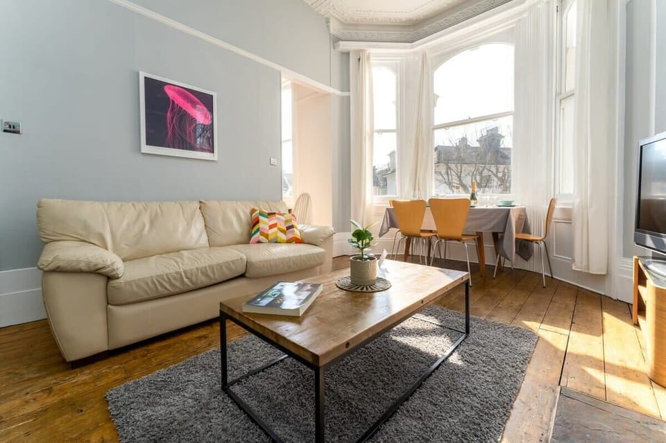 Welcome to this beautifully decorated, split-level apartment in a stunning Victorian house, offering both modern comforts and classic charm. Located on the upper ground floor, this spacious two-bedroom, two-bathroom apartment is perfect for up to six guests. Just a five-minute walk from Brighton train station, and close to Seven Dials, the beach, and vibrant local cafes, this quiet yet central setting makes it ideal for families, friends, and professionals alike.