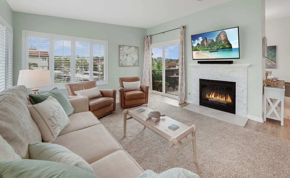 Located on the top floor - this beautiful and quiet condo is all one level once inside. Camera located outside front door for your added security. Front patio has peek-a-boo ocean views. It has everything you need for an enjoyable stay including free WIFI,