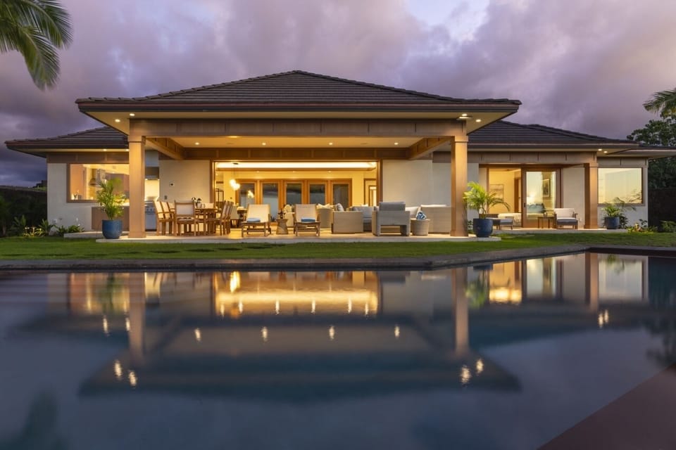 Discover island sophistication at 4BR Luxury Puka Pa Estate (1201), an architectural masterpiece within the exclusive Hualalai Resort in Kailua Kona, Hawai‘i. Built in 2024, this newly designed 3,640-square-foot home offers elegant indoor-outdoor living framed by ocean and golf course views, creating the perfect retreat for families or couples seeking refined comfort on Hawai‘i’s Kona-Kohala coast.