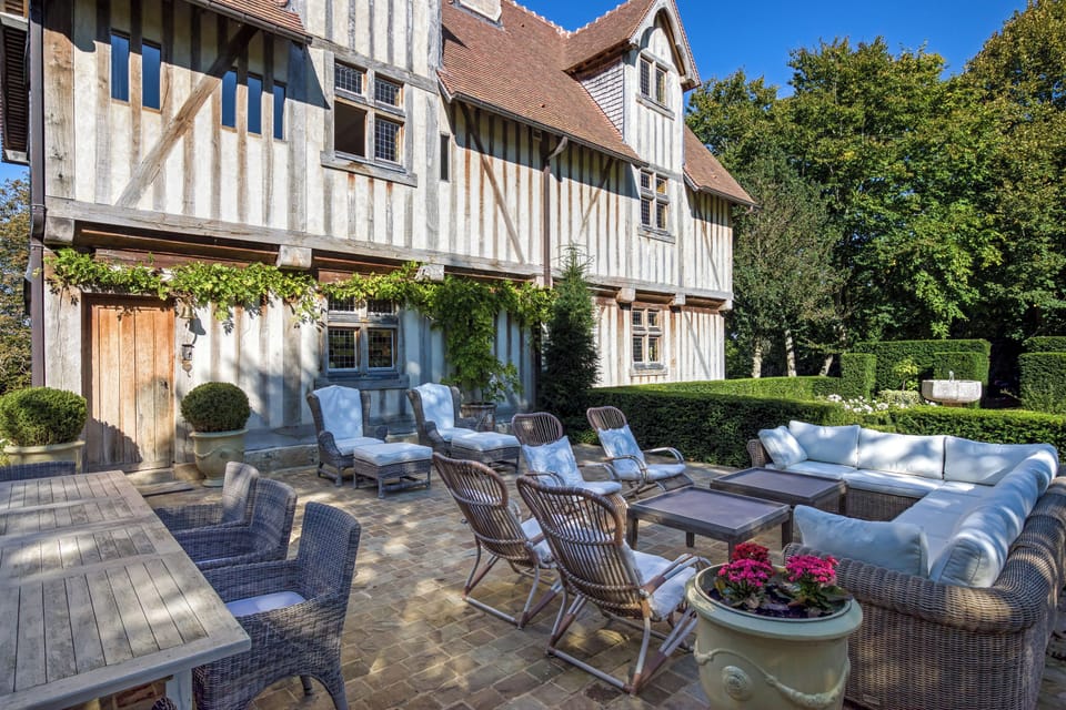 The Manoir is a "Monument Classé" of France, build in the XV century and fully renovated to its splendor in 2022. Located 10 steps from the beach with direct access. It is surrounded by 2 hectares of forest. As you drive into the Manoir you will find parking for several cars. All amenities, floors, bathrooms, heater, appliances and furnishings are top of the line. The decoration is exquisite !! The fully equipped eat-in kitchen counts with a La Cornue stove and ovens, a large dinning table for 6 and beautiful china, table linens and flatware. In the living room you will find a great fireplace with wood provided during the winter months. The room is decorated with French and Italian antiques. The library is located on the ground level with a very large screen TV and books in English, Spanish and French. It is a great room to watch a movie or read. A desk is also available in this room. The master bedroom is located on the first floor with an ensuite master bathroom, double sinks, WC etc. The two additional guests bedrooms are located on the third floor, each one with a king size bed that can be converted into twins, ensuite showers and WC. Egyptian cotton towels and soaps are provided. All beds are dressed with Italian feather pillows, comforters and Italian linens. Damage insurance is required and children are not recommended due to the stairs and decor of the house. However, an additional guest house can be rented within the property which is more appropriate for children of all ages. Both houses are listed and can be rented together or separately. Pets are not allowed.