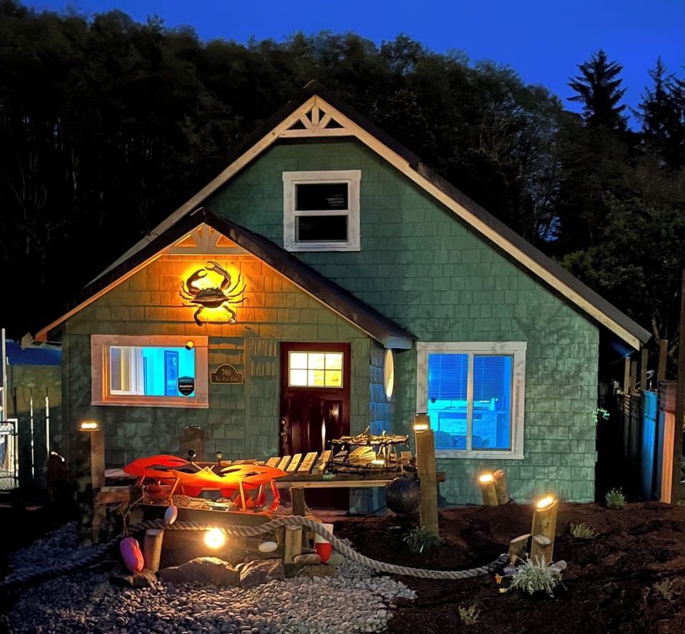 Soothing Crab themed 3-bedroom home with WiFi and a hot tub in Winchester Bay.