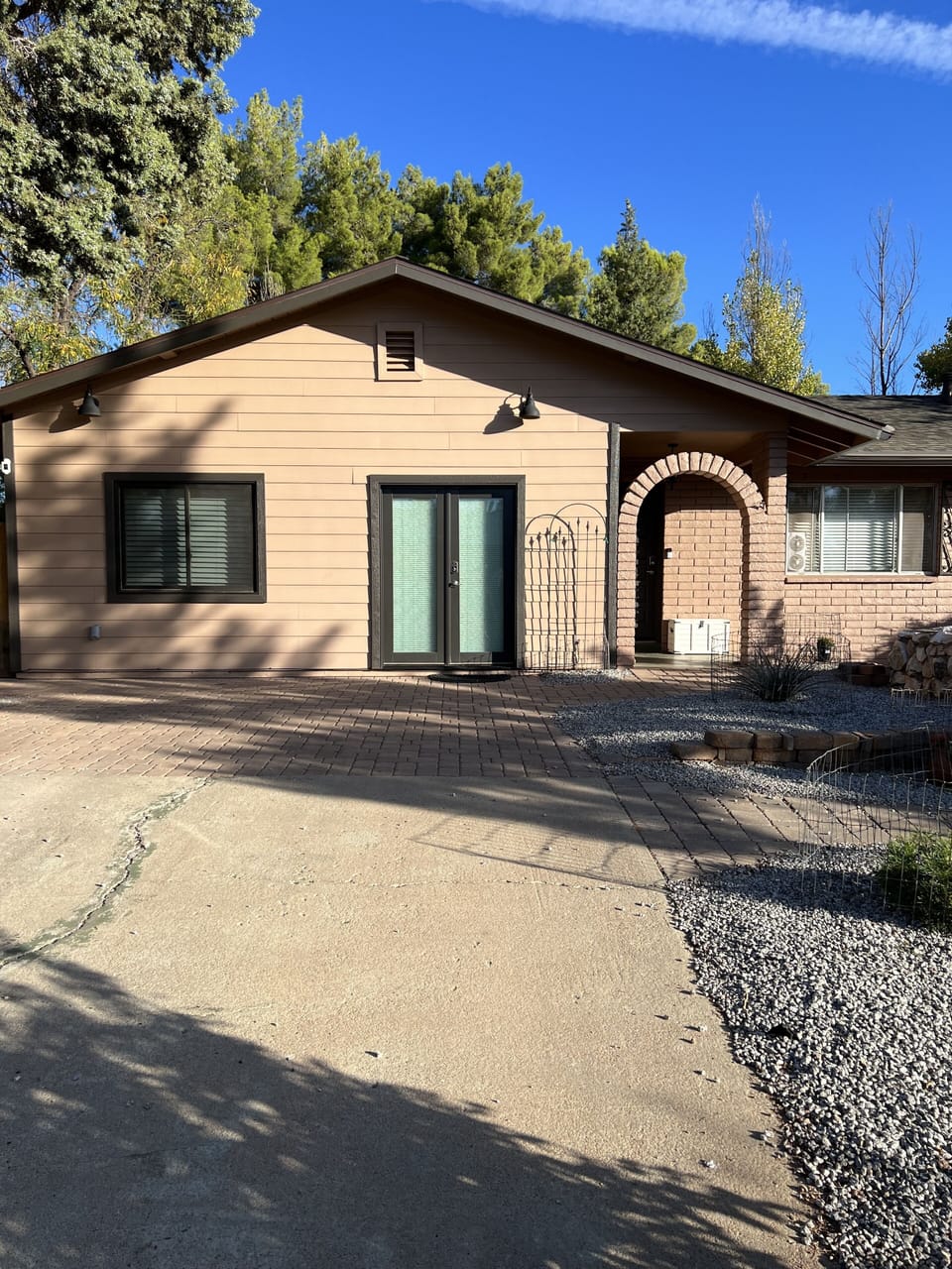 Your private entry is glass French doors at the end of the driveway. Entry door will have your private code so you won't have to keep track of keys.
