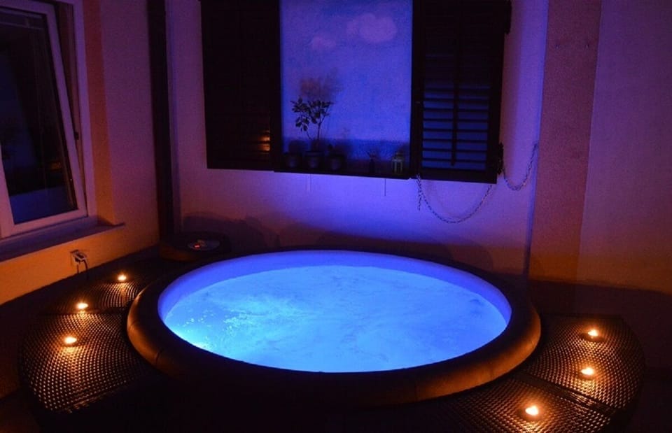 Apartment Romeo has a parking place above the house, two terraces, hot-tub, 2 bedrooms (with double beds), an open space kitchen / dining / living room and bathroom.