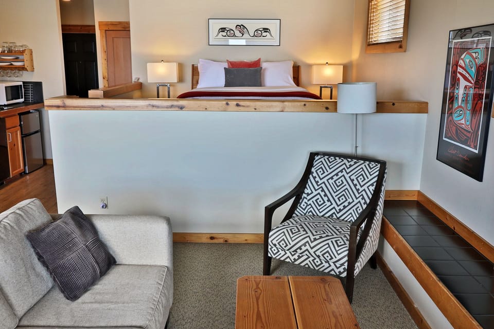 Welcome to Boatyard Waterfront Studio 1. Nestled at the water's edge in Langley - The Village by the Sea. This sweet vacation property will enchant you from the moment you arrive. Just a short and scenic ferry ride from Mukilteo is all it takes for the relaxation to begin.Wake to the soothing sound of water and enjoy a Whidbey sunrise with your morning cup of coffee from the private deck or fireside tucked into a cozy chair. With breathtaking views of the Cascade Mountains and Saratoga Passage, you will enjoy endless eye candy. Harbor seals are welcome daily visitors and the occasional whale appearance is a real treat. If you enjoy watching birds, get ready for some unique sightings - binoculars are at the ready. An eclectic selection of books and games provide endless fun, yet the tranquility of the setting offers a peaceful space to simply rest and unwind. Stocked with coffee, tea, light snacks and kitchen essentials for preparing meals. Locally sourced personal care items are also provided for your convenience. Book your stay and find your happy place!