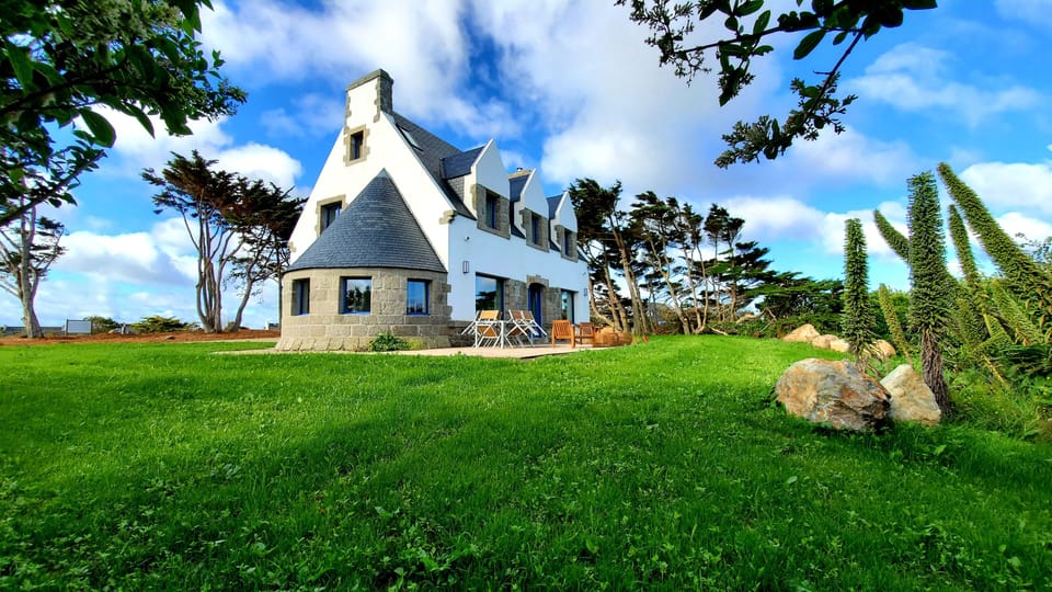This Villa, facing the clipping waves splashing in a billion shimmering dancing bubbles, braving the surf and the spray, laid down on the dune at the juncture between the small Ker Pors Striz beach and the magnificent Amiets beach, welcomes up to 8 guests. The house boasts a large combined living and dining room facing the sea. It includes four bedrooms, a full bathroom, and a three-quarter bathroom all facing the sea; there are also 2 washrooms and an exterior shower. The garden and deck are organized around the sea, steps away from the beach through a private pathway.