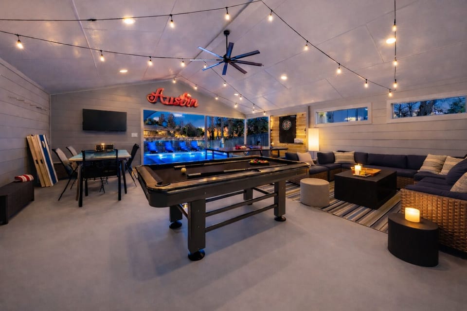 Ranked among the premier vacation rentals in the "Austin Villas" collection, our property stands out with its exceptional location and outstanding amenities. Whether you're organizing a significant celebration like a bachelor/bachelorette party, a wedding, a ladies' retreat, a guys' golf trip, or a getaway for multiple couples seeking enjoyment, this is the ideal destination for you! Our guests revel in the finest offerings of Austin, including live music, trendy bars and restaurants, Formula 1 racing, stunning golf courses, and an array of other attractions.