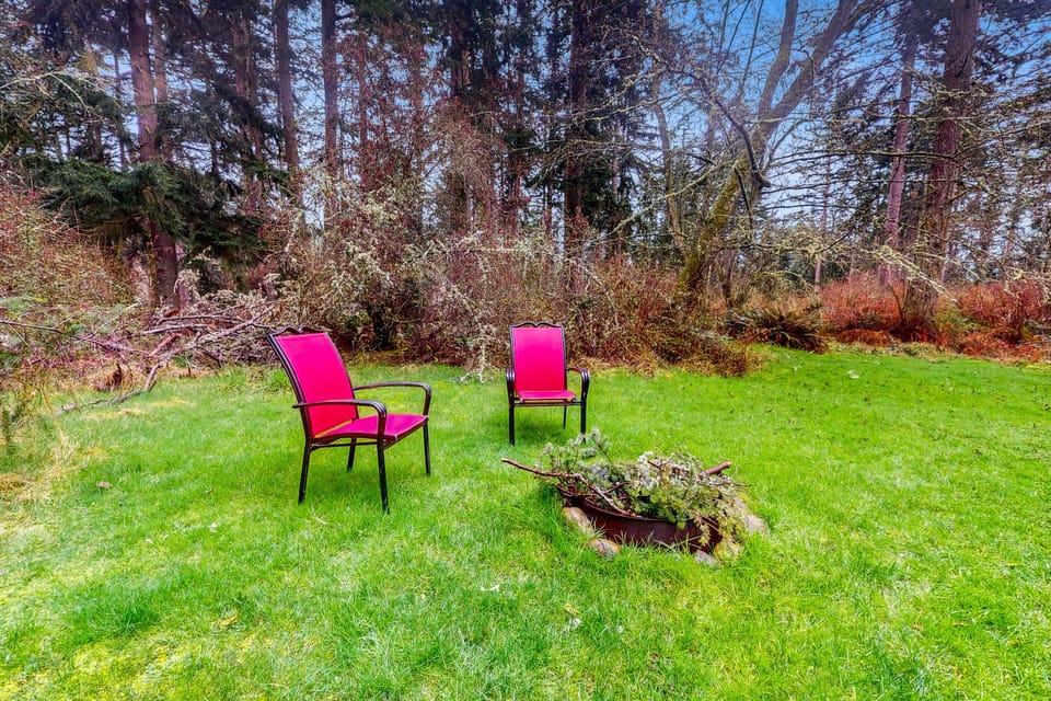 This secluded and very cozy Whidbey Island cottage is the perfect romantic getaway for two! Start each day by taking in views of the forest through French doors in your bedroom. The kitchenette is equipped with all the amenities you need for light cooking, including a two-burner cooktop, a toaster oven, a microwave, a toaster, and a coffee maker. Outside, the surrounding trees make you feel far away from it all. And in the evenings, the firepit (be sure to bring some firewood) is the perfect place to sit and watch the stars come out overhead.