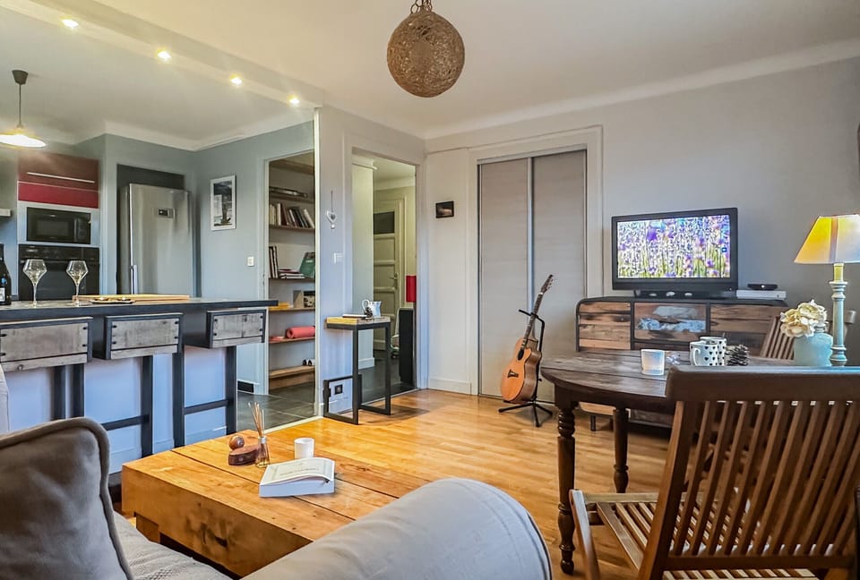 Lovely apartment, carefully decorated, offering beautiful living spaces where a peaceful atmosphere prevails. Located in a quiet neighborhood, this place is ideal.