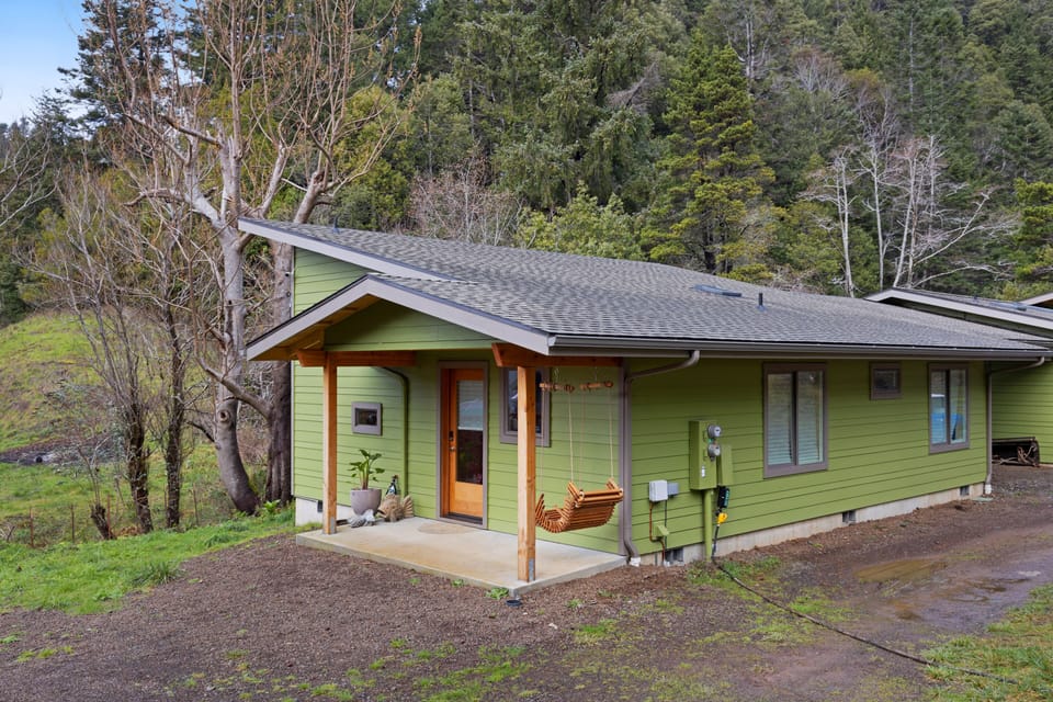 Beautifully and newly built with your comfort and vacation experience in mind, this home is the perfect spot to settle in for your next escape to Gold Beach. This Oregon Coast retreat features a polished kitchen with a large island, sleek contemporary design, and brand new stainless steel appliances, as well as a comfortable dining and living room where guests can enjoy time together. Outside, you'll love relaxing on a spacious deck that overlooks the waters of Riley Creek. The front porch swing is something enjoyed by kids and parents along with seniors–the perfect place to unwind!