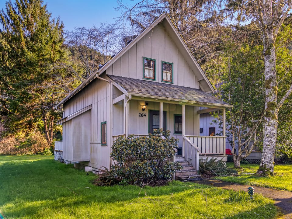 Located in the quaint area of Quiet Water along the Yachats River. A Short walk to the heart of town, the beach and the river is right out the back door. Perfect for a small family or a group of friends. Get your fishing buddies together and fish right off the bank. This charming cabin has a Queen bed in the large open loft, 2 full bathrooms and 3 sleeping nooks. It is a one of a kind experience that everyone is sure to enjoy.