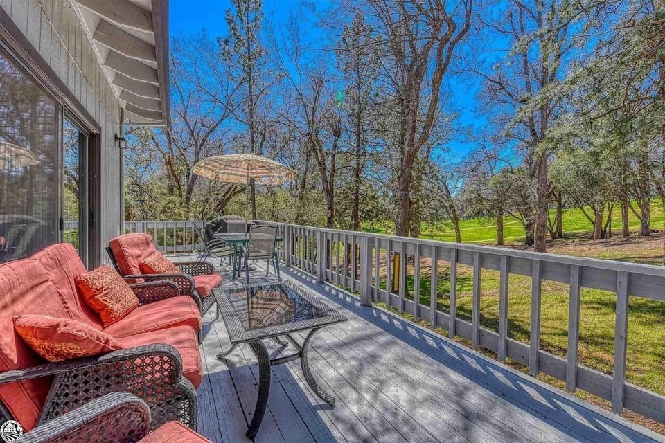 Welcome to our stunning 4-bedroom, 3-bathroom cabin in Pine Mountain Lake. Located just 23 miles from the entrance of Yosemite, in a prime spot overlooking the golf course, this cabin is the perfect getaway retreat! Beautiful and well-maintained, 2700 sq. ft. home in a great location with golf course views! Our home has a wraparound deck with views of the Yosemite mountains and the PML Championship golf course.