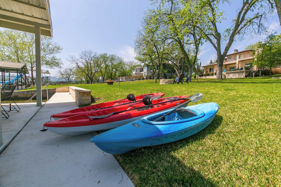 Begin your morning with a cup of coffee and step out onto the upper patio to take in the peaceful river views. Spend your day exploring the Llano River with two adult kayaks, a youth kayak, or enjoy time on the boat with the available boat lift. After a day of adventure, gather around the fire pit to unwind under the stars, sharing memories. As evening falls, enjoy a cozy meal on the patio, grilling with friends and family on the propane BBQ grill.