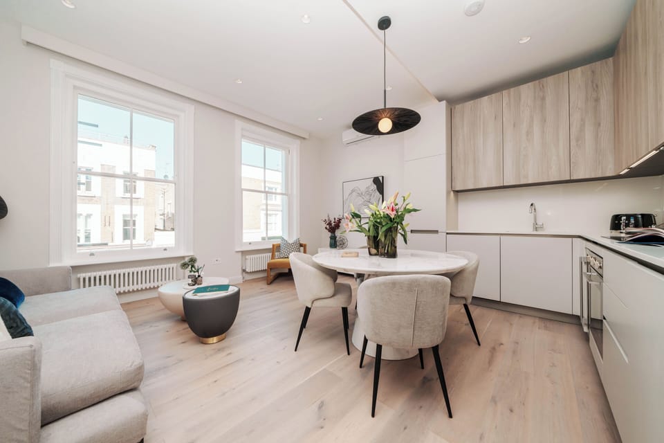 This stunning luxurious brand new-3-bedroom duplex flat nestled in the prestigious neighborhood of Notting Hill, next to Electric Soho House and Notting Hill Bookshop offers a harmonious blend of modern design and classic elegance.