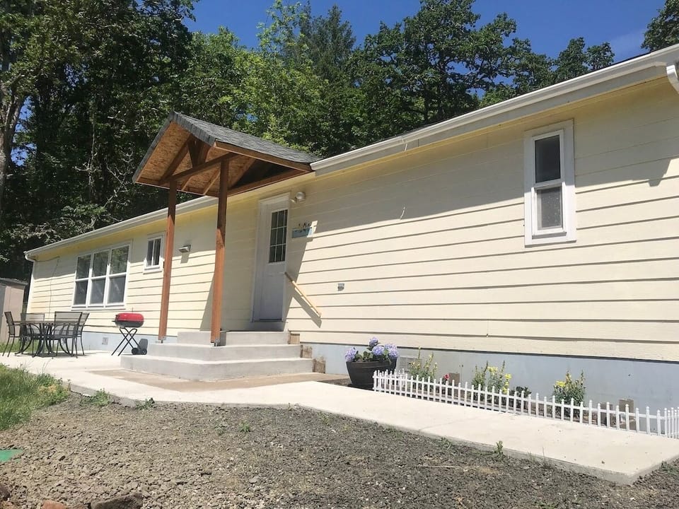 The ranch guest house is a newer Mfg home located on 95 acres. It has cottage decor: cozy quilts, comfy beds and a modern kitchen w laundry. It has a patio , outdoor table & grill. It is an awesome place to relax and enjoy nature. Wildlife includes black tail deer, elk, birds, bobcats, raccoons, squirrels and more. The town of Brownsville is 6 miles north of this property. We welcome travelers from all countries, all backgrounds and belief systems including their well trained furry friends.