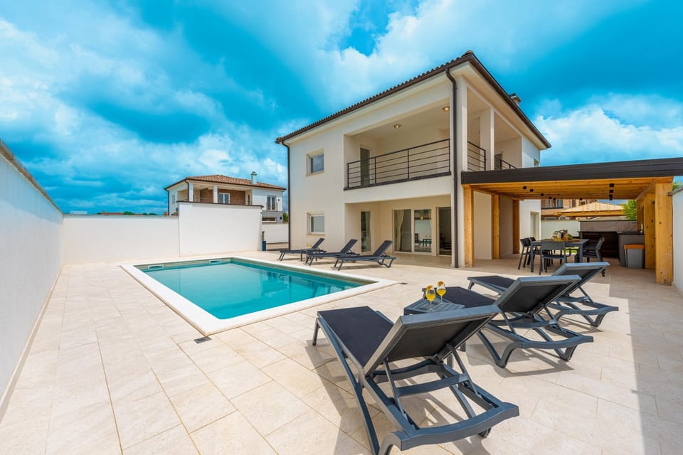 Villa D&J is a family holiday home located in Vodnjan, 10 km from the city of Pula. Pula airport is 14 km away, and the first beaches of Peroj (6 km) and Fažana (7 km) are 10 minutes from the villa.