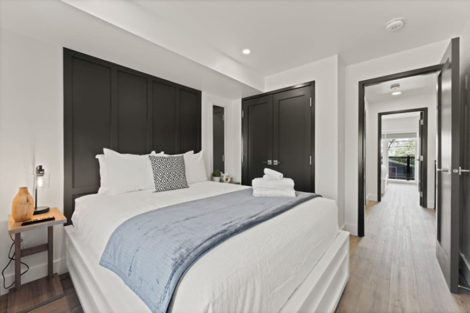 Spanning three levels, our condo boasts three beautifully appointed bedrooms, ensuring plenty of space for you and your companions to unwind in comfort. As you ascend to the third floor, prepare to be mesmerized by the magnificent views of the lake that greet you from every angle. Here, the master bedroom awaits, complete with a lavish king-size bed, a large-screen TV, and an ensuite full bathroom featuring a double vanity and a double walk-in rain shower, all complemented by sweeping vistas of the shimmering waters below.