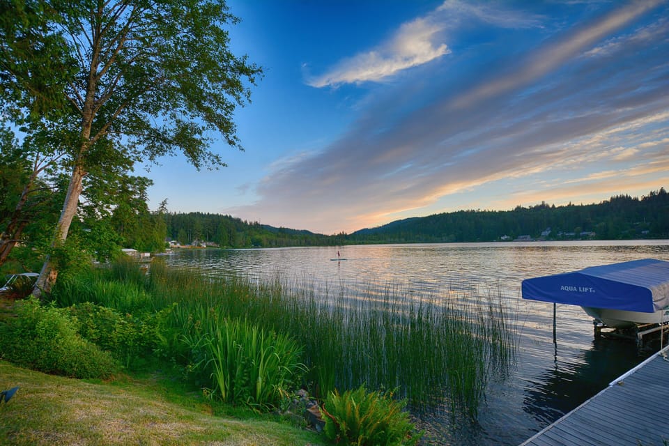This beautiful 2900+ sq ft lakefront get-a-way is waiting for you, complete with 6 kayaks (this includes one 2-person kayak and 1 fishing kayak), 2 stand-up boards, a paddle boat, and a hot tub room overlooking the lake, with a gorgeous view of the Olympic Mountains and the sunset for you and your guests!