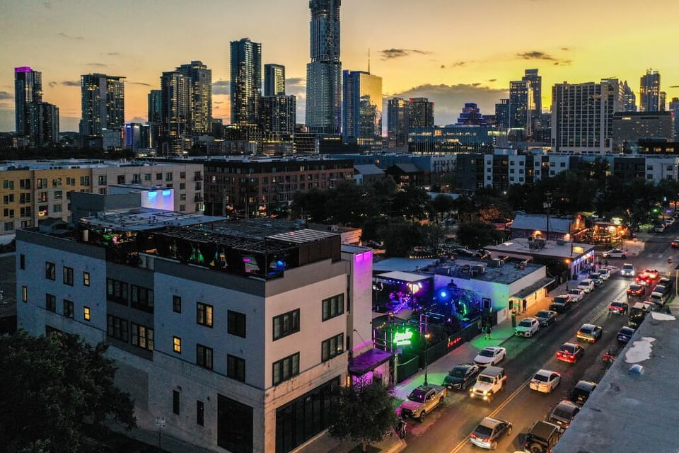 Welcome to Inn Cahoots — Austin’s premier large-group destination located directly on East 6th Street in the heart of the downtown entertainment district. This expansive three-unit combination delivers over 7,000 sq. ft. of flexible penthouse-style living, making it ideal for corporate retreats, leadership offsites, multi-team gatherings, and high-capacity celebrations.