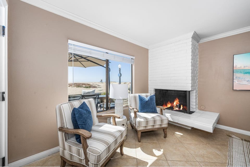 Prime Location in Newport Beach: Situated on 4th Street, this stunning oceanfront property places you just a short walk from the renowned Balboa Pier, the Balboa Fun Zone, and the Balboa Ferry, offering a variety of fun and adventure just steps from your door. The property is also directly in front of volleyball courts and cozy fire pits, allowing you to enjoy the lively beach scene at any time of day.
