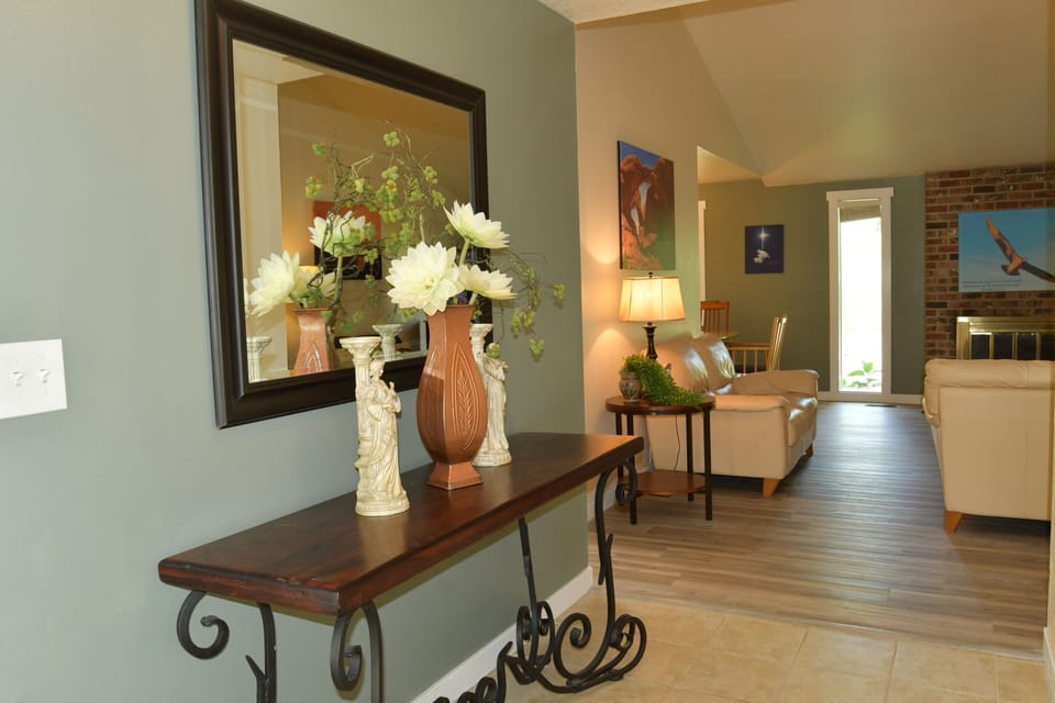 The living room with high vaulted ceilings will welcome you right in and the formal dining room will seat up to 10 or more comfortably.