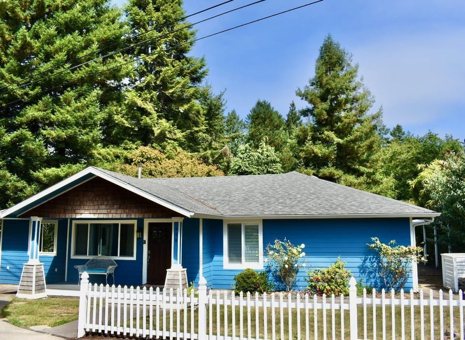 While staying at this spacious 3 bedroom costal retreat, you will feel right at home. It has been completely remodeled recently with open floor plan and hardwood floors throughout. The master bedroom has a king size bed with a beautiful view of redwoods and darkening shades. Bathroom connected to the master has a double-headed sauna shower. The 2nd and 3rd bedrooms have queen size beds. Second bathroom across the hall with a claw foot tub. The fully appointed kitchen is well stocked for all your culinary needs. The main living room has a wood pellet stove and a fun ocean theme loft. Additional den has a smart television and a sofa that makes into a bed. Outdoors, you can enjoy a fire in the fire pit and dinning outside while relaxing on the large private deck. The property is on an acre of land surrounded by redwoods with a creek giving you the feel of the countryside while being in the middle of town. You are an easy walk to breweries, restaurants, and stores. The home is near Azalea Park and one mile from Chetco Point Park and beach access.
