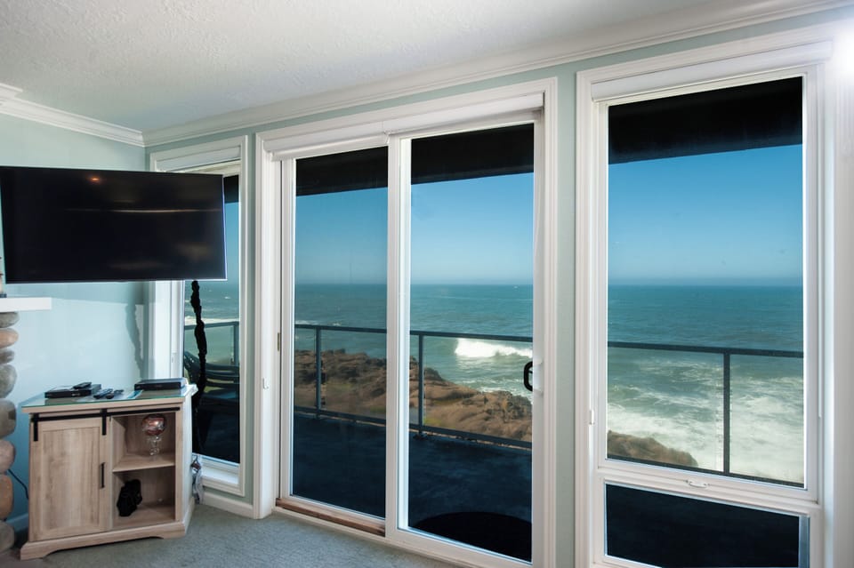 The Whaler’s Suite is a luxury getaway destination for those seeking stunning views of the Oregon Coast while enjoying a quiet evening with the warmth of a river rock gas fireplace.