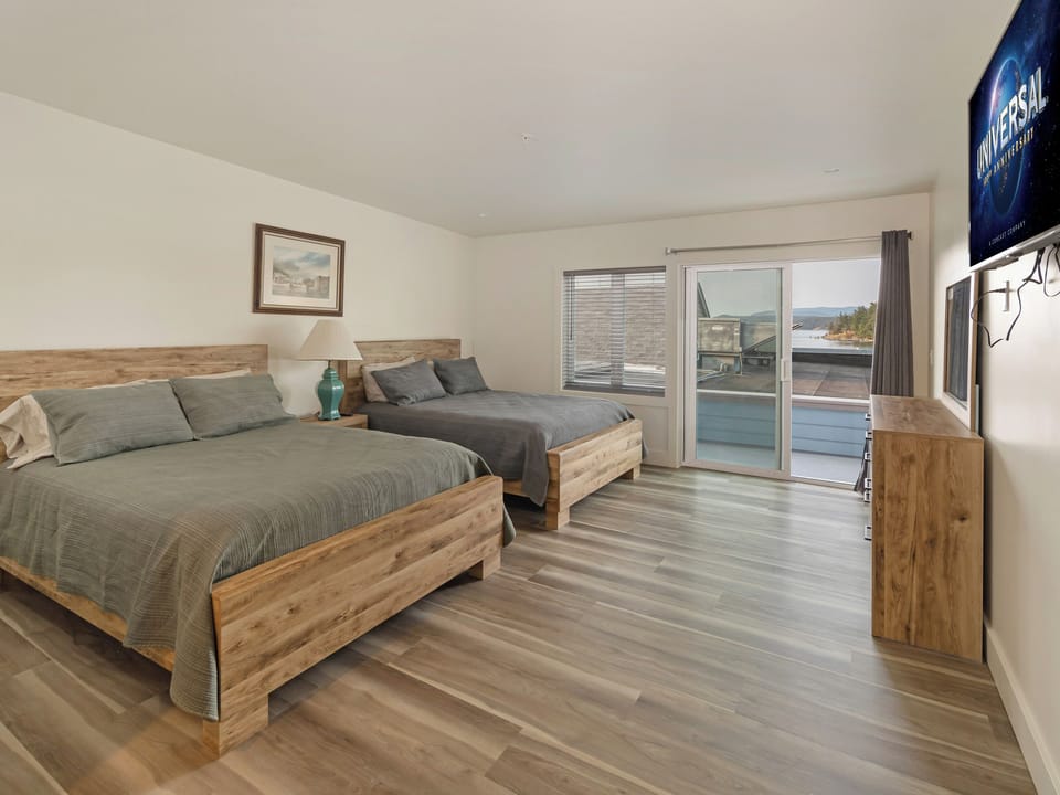 You can relax and watch a movie in your private room with two queen beds, a full bathroom and porch.
