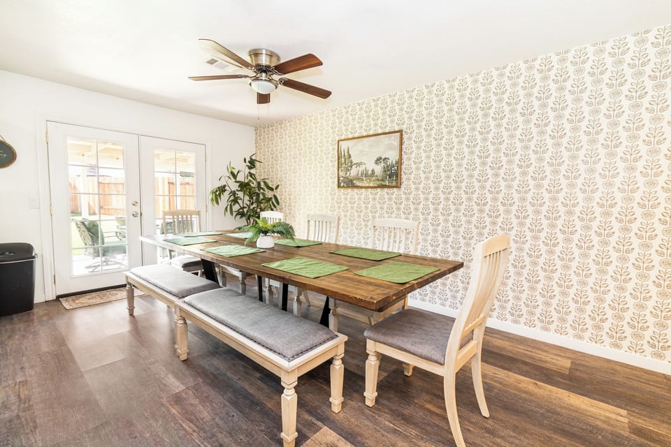Each bedroom is thoughtfully furnished to make your stay as comfortable as possible, while the large family space is ideal for sharing meals, playing games, or simply unwinding together. Step outside into the backyard and enjoy a peaceful spot to sit back, recharge, or share stories after a busy day exploring.