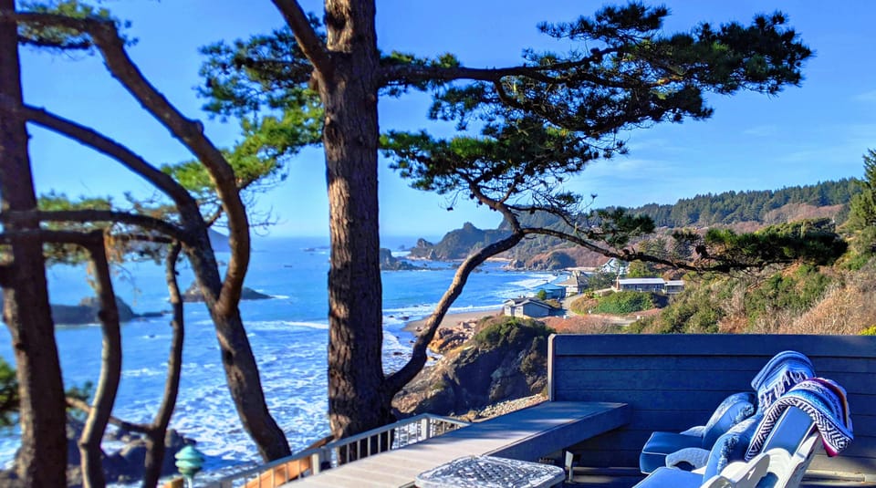 Patrick & I were (and still are!) grateful & amazed at the good fortune that came our way when we acquired two 'diamond in the rough' coastal properties on the Southern Oregon coast that are right next to each other. Both sit on their own cliffside acre overlooking the vast Pacific Ocean.