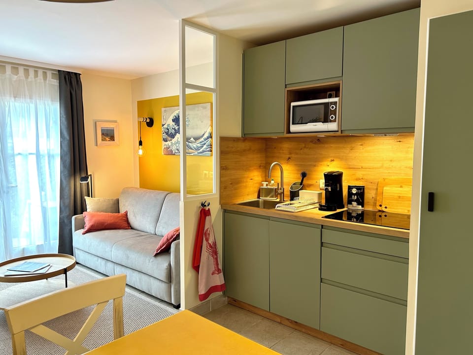 Prepare a home-cooked meal in the kitchenette, complete with a stovetop, a refrigerator, and a dishwasher, as well as a coffee maker, an electric kettle, and a microwave. Bathroom amenities include a hair dryer, towels, and toilet paper. And there's access to laundry facilities, so you can even pack a bit lighter. Other amenities include a sofa bed, bed sheets, heating, and a dining table.