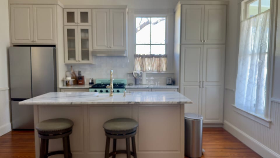 My husband and I stayed in the Mirning Glory. Our family members stated in the Althena and Larkspur houses. We loved our stay in the Morning Glory! The house was spacious, comfortable, and decorated cute for Christmas. We immediately felt at home. The kitchen was equipped nicely and a tray of snacks on the table and drinks and ice in the refrigerator provided a warm welcome. The beds were comfortable, the bed linens and blankets were numerous, and the closets and storage available met our needs. The house had central air and heat. The crazy Texas winter temperatures meant we used both and the house was comfortable the entire stay. A full size refrigerator in the kitchen was a plus for us. The grandkids enjoyed the porches and the area between our houses. They loved eating outdoors in this homey setting. We highly recommend the Morning Glory!