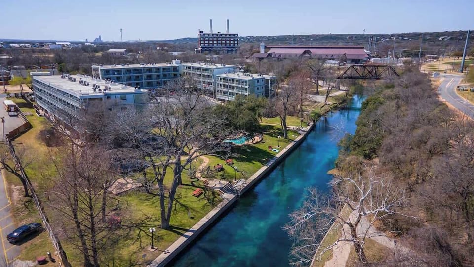 Condo is directly on the Comal river with a pool and hot tub on premise. Texas tubes is next door for easy tubing access. 5 min walk to all downtown has to offer.