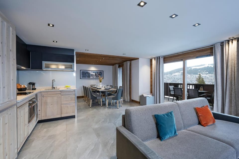 The Residence MGM Amaya**** is located just off les Saisies slopes in the heart of Beaufortain Valley in Savoie. After starting on skis you can take the chairlift Carrets. This splendid residence is set next to the bus stop (free buses) and is about 15 minutes walk from les Saisies centre. It is a luxury residence where everything has been planned to make your stay unforgettable. It is composed of 3 chalets, the residence Amaya has 44 amazing apartments from 2 to 5 rooms, perfectly designed and decorated. The residence offers many recreational areas: a lounge bar, a children's area, a fireplace and a Moutains of the World Spa © equipped with 2 treatment rooms and a relaxation lounge, a wellness area with heated indoor pool, children's pool, whirlpool bath, sauna, steam room and fitness room. Surface area : about 100 m². View mountain. Living room with bed-settee (en 2 lits simples). Bedroom with safe, double bed (180x200), shower room, WC. Bedroom with double bed. 2 bedrooms with 2 single beds (90x200). Kitchen with kettle, 2 coffee machines (filtre et Nespresso), Wine cellar, oven / microwave, toaster, dishwasher, 2 induction cooking rings, fridge. Bathroom with bath-tub, hairdryer, towel-dryer. Shower room with shower, hairdryer, towel-dryer, WC. Separated WC. Balcony with garden table and chair.