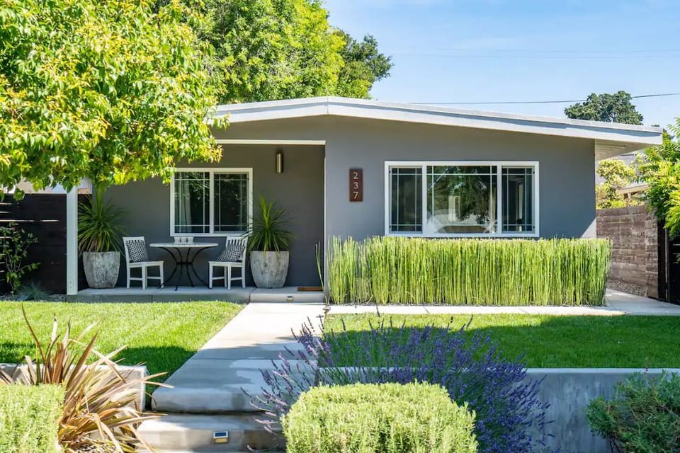 This charming Mid-Century Modern home, just north of Vine, sits in the heart of Paso Robles within close proximity to the Downtown Core. The home has been completely renovated and is ready for you! The two bedroom and one bathroom home features hardwood flooring, open concept floor plan, and fully landscaped front and rear yards with and much more. Brand new fridge. Full kitchen with cooking supplies.