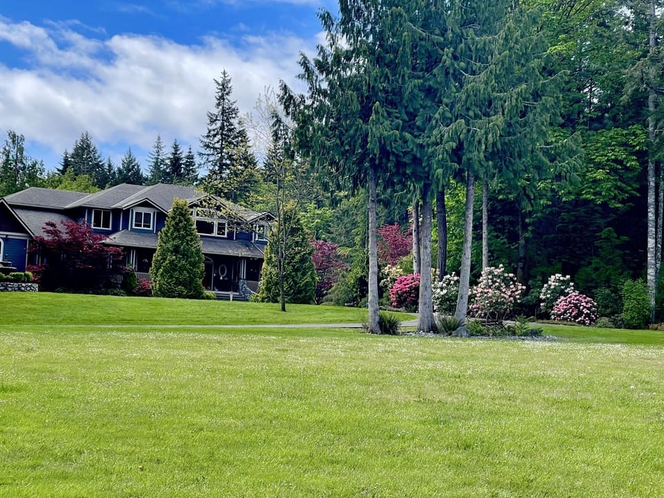 Also note that there is a caretakers mobile at front of property with various outbuildings horse shelters, barn,shop,greenhouse that is not included in the rental. You drive in the common driveway go past all outbuildings over the bridge to the country estate. Note that if anyone is wanting to see horses and stroll over bridge and hangout at creek with fire pit you are welcome to do so just respecting the rules of the property. If interested in horse lessons and mini camps for families it can be available at a extra cost please enquire within.