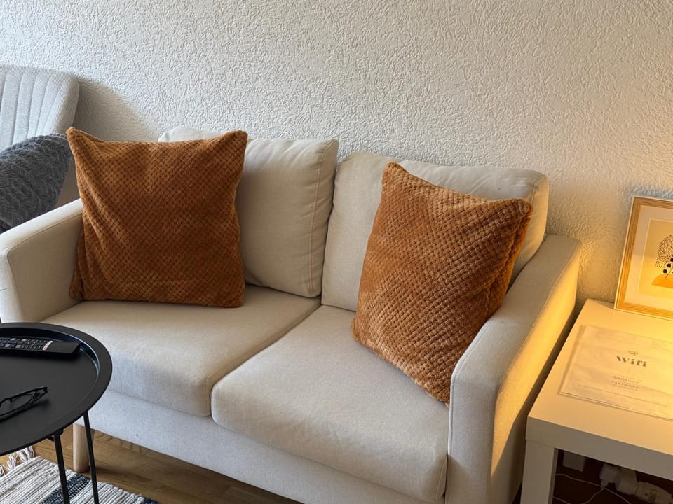 The apartment is located in a quiet area 10 minutes away from the train station. It has a kitchenette with all the basic equipment you'd expect (oven, stove, fridge, watercooker, Nespresso coffe machine but without capsules). There is also a table for two and a tiny couch.