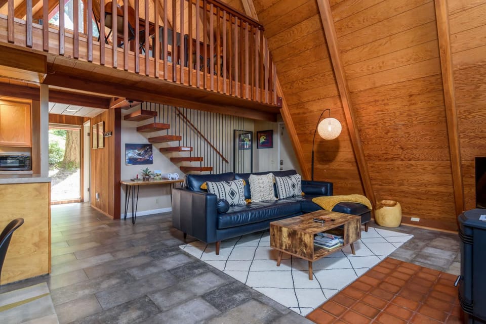 Loved the private location and well-appointed interiors. Furnishings were well thought out and functional. The kitchen was well equipped with cookware and utensils. The couch was comfortable, and the bedrooms were very cozy. Bathroom was on the small side but adequate for our needs. Enjoyed the peaceful and large deck in the back among evergreens.